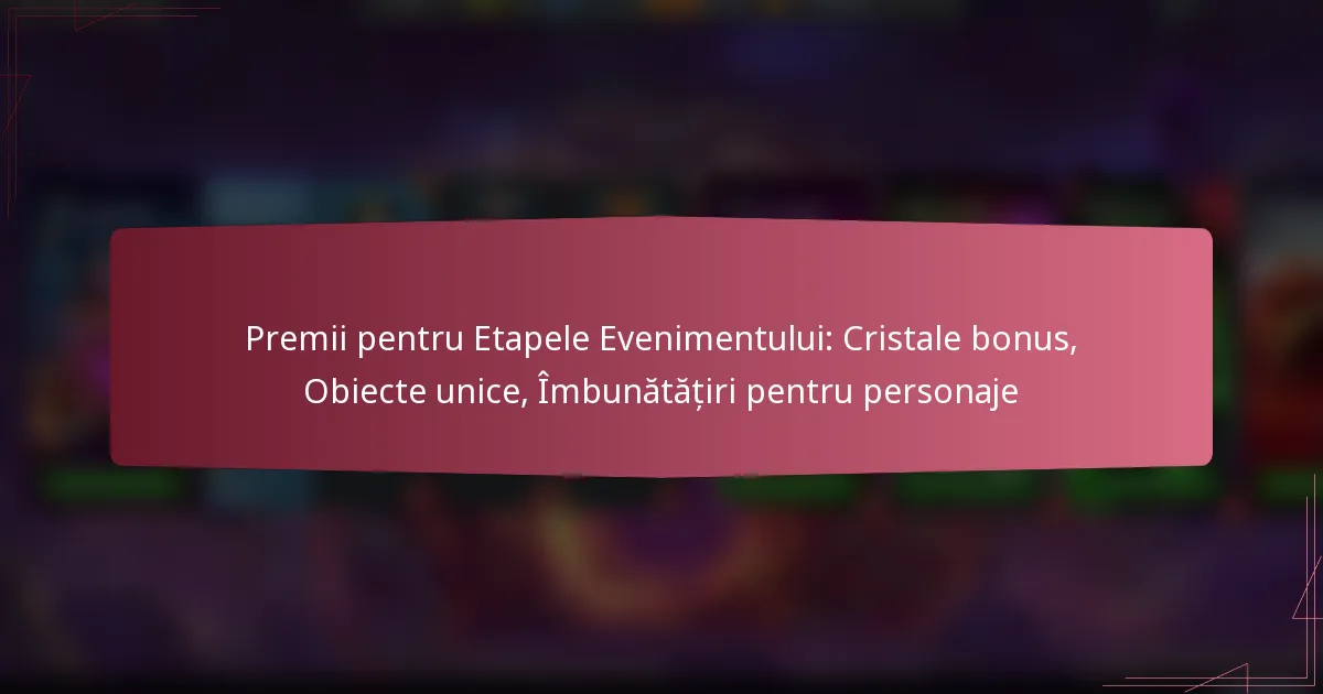 Premii pentru Etapele Evenimentului: Cristale bonus, Obiecte unice, Îmbunătățiri pentru personaje